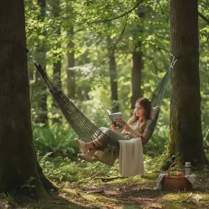 Essa rede de dormir para uso externo foi criada para quem busca conforto, praticidade e liberdade em qualquer aventura ao ar livre.